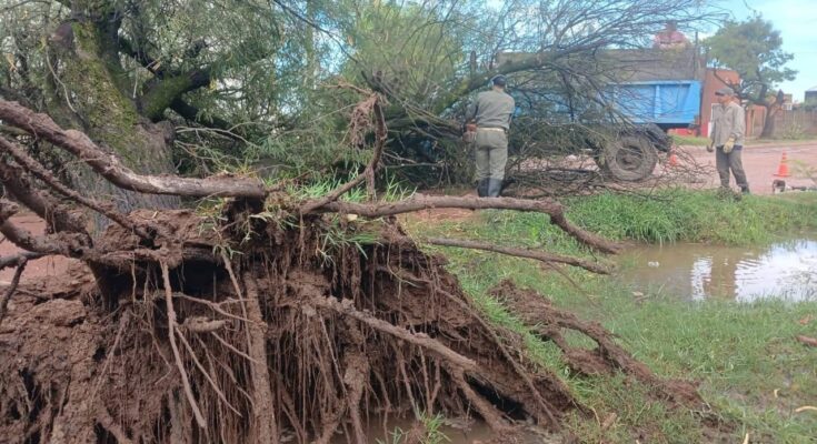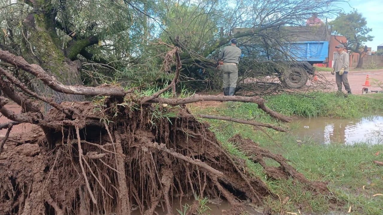Uno de los trabajos se realizó en la intersección de calle Paraguay y avenida Libertadores de América, donde un árbol caído obstaculizaba por completo el paso de vehículos y peatones. El personal municipal procedió a la remoción del ejemplar y a la limpieza del sector, permitiendo restablecer rápidamente las condiciones normales de circulación.