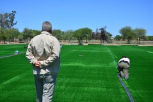 CASTELLI. – El sueño de un complejo deportivo que reuna varias disciplinas deportivas en Castelli era una utopía, sueño anhelado de muchos y hueras promesa de otros. Sin embargo desde la gestión de Gobierno del intendente Pio Sander muchas horas de trabajo y planificación dieron como resultado el inicio al nacimiento de la Villa Deportiva Diego Armando Maradona, primero fue el Microestadio, lugar donde se practican diferentes disciplinas y es el punto de encuentro de cientos de jóvenes deportistas. En las afueras del estadio se anexo una cancha de fútbol 11 iluminada con seguras tribunas, lugar que periodicamente reúne a equipos de la región.Como parte del proyecto de la Villa Deportiva se preve crear espacios para otras disciplinas, es por ello que en esta ocasión, en un trabajo coordinado entre el gobierno de la Provincia del #Chaco el Municipio de #Castelli y Vialidad Provincial se avanza en la construcción de la cancha de «Hockey con césped sintético», una cancha que cumple con los requisitos y dimensiones correspondientes para torneos de toda índole. Por ello debemos destacar la predispocisión del intendente Sander quien a través de un trabajo consensuado y participativo con los referentes de las distintas disciplinas se pudo lograr avanzar en acciones directas destinadas al deporte.