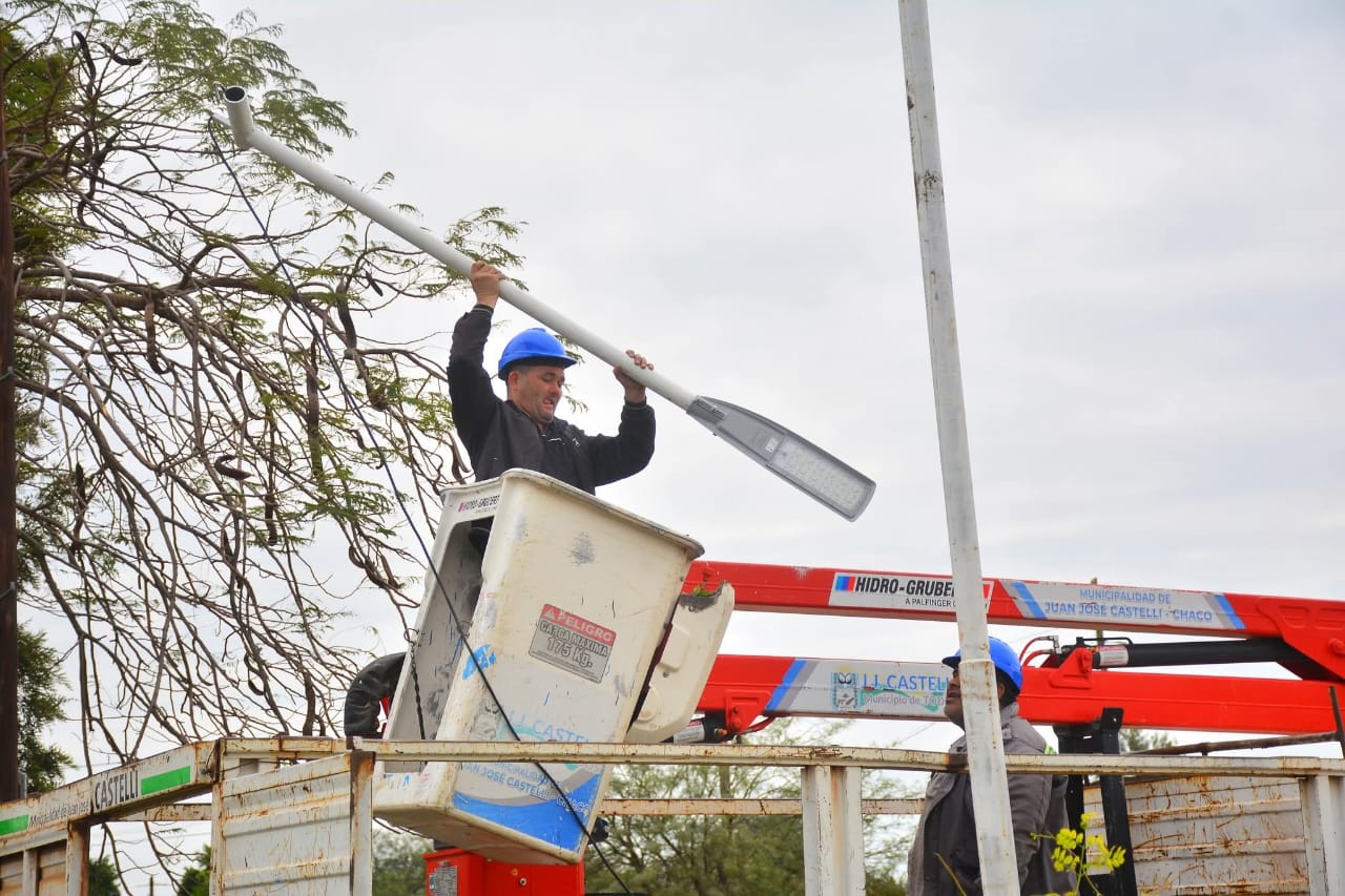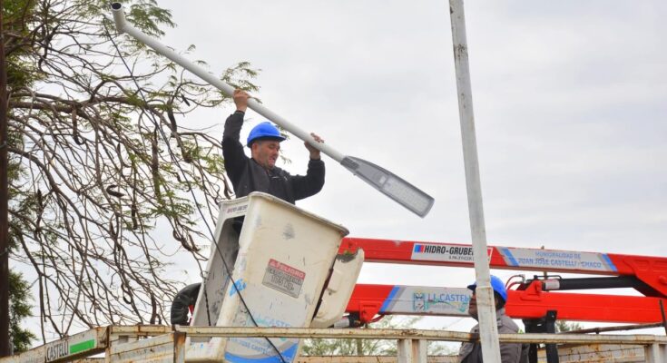 La Municipalidad de Juan José Castelli avanza con el plan estratégico de modernización y recambio de luminarias en distintos puntos de la ciudad, con el objetivo de mejorar la calidad del alumbrado público y brindar mayor seguridad a los vecinos. Los trabajos ya se concretaron en arterias como La Pampa, Alem (prolongación), Santa María de Oro, Natalio Roldán, Río Teuco y Sargento Cabral, entre otras. Actualmente, las cuadrillas municipales desarrollan tareas sobre Hipólito Yrigoyen (prolongación este) y, en los próximos días, está previsto intervenir en calle Formosa.