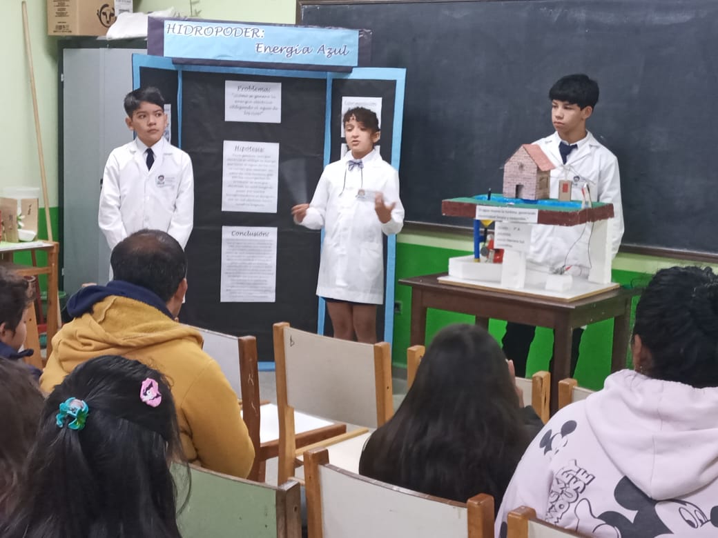 Este martes 17 de junio se llevó a cabo la Feria de Ciencias en la Escuela de Educación Primaria N° 255 «Felipe Boero» de Juan José Castelli. Con la participación activa de todos los cursos, los estudiantes presentaron proyectos que abarcaron temáticas diversas como alimentación saludable, energías limpias, reciclaje, autismo y agricultura urbana. Entre los trabajos destacados, alumnos de 7° grado expusieron un modelo funcional de energía hidráulica utilizando tapitas de gaseosa como aspas de turbina, logrando encender pequeños focos como demostración práctica.