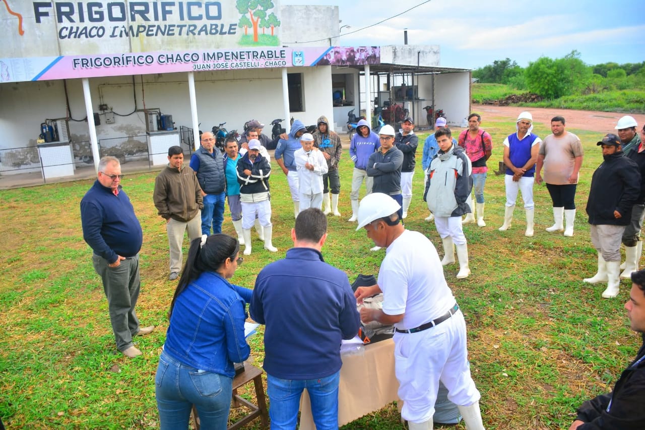 La Municipalidad de Juan José Castelli concretó un importante paso en el cumplimiento de sus obligaciones laborales al realizar la entrega de nueva indumentaria de trabajo al personal que se desempeña en el Frigorífico Municipal. El acto, llevado a cabo este jueves 23 de octubre, estuvo encabezado por el intendente Pío Sander, acompañado por el secretario de Gobierno, Ismael Pablo Barnes. Esta acción no solo se traduce en un beneficio directo para los trabajadores, sino que materializa los acuerdos preestablecidos con el gremio municipal SUOEM, demostrando la fluidez y el respeto por los compromisos pactados entre el Ejecutivo comunal y la representación sindical.