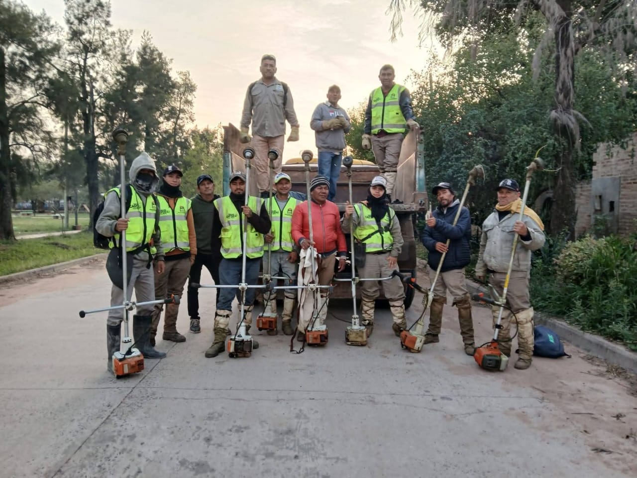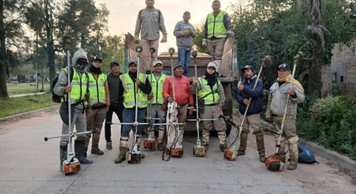 Cuadrillas municipales realizaron tareas de desmalezado, recolección de ramas y mantenimiento de espacios comunes.