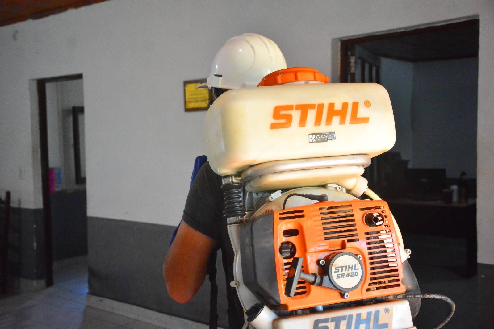 La fumigación preventiva se llevó a cabo en distintos puntos estratégicos de la ciudad, incluyendo comisarías, bomberos y dependencias policiales.