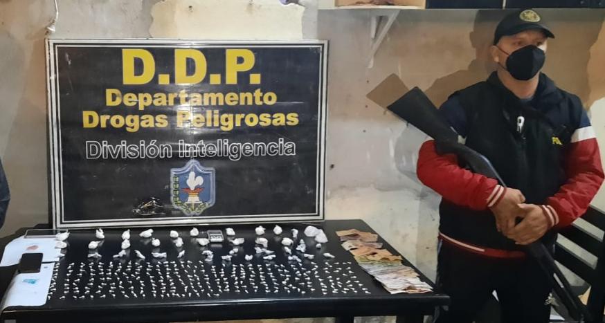 Hay una mujer detenida. También secuestraron marihuana y dinero.