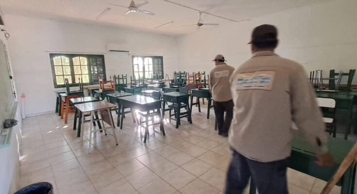La Secretaría de Servicios Públicos, a cargo de Rubén Chávez, y la Coordinación de Ambiente, dirigida por Daniel Nuske, encabezaron el operativo en las instituciones educativas.