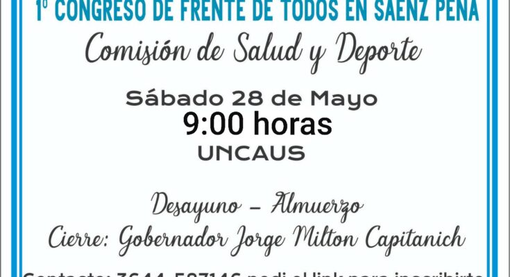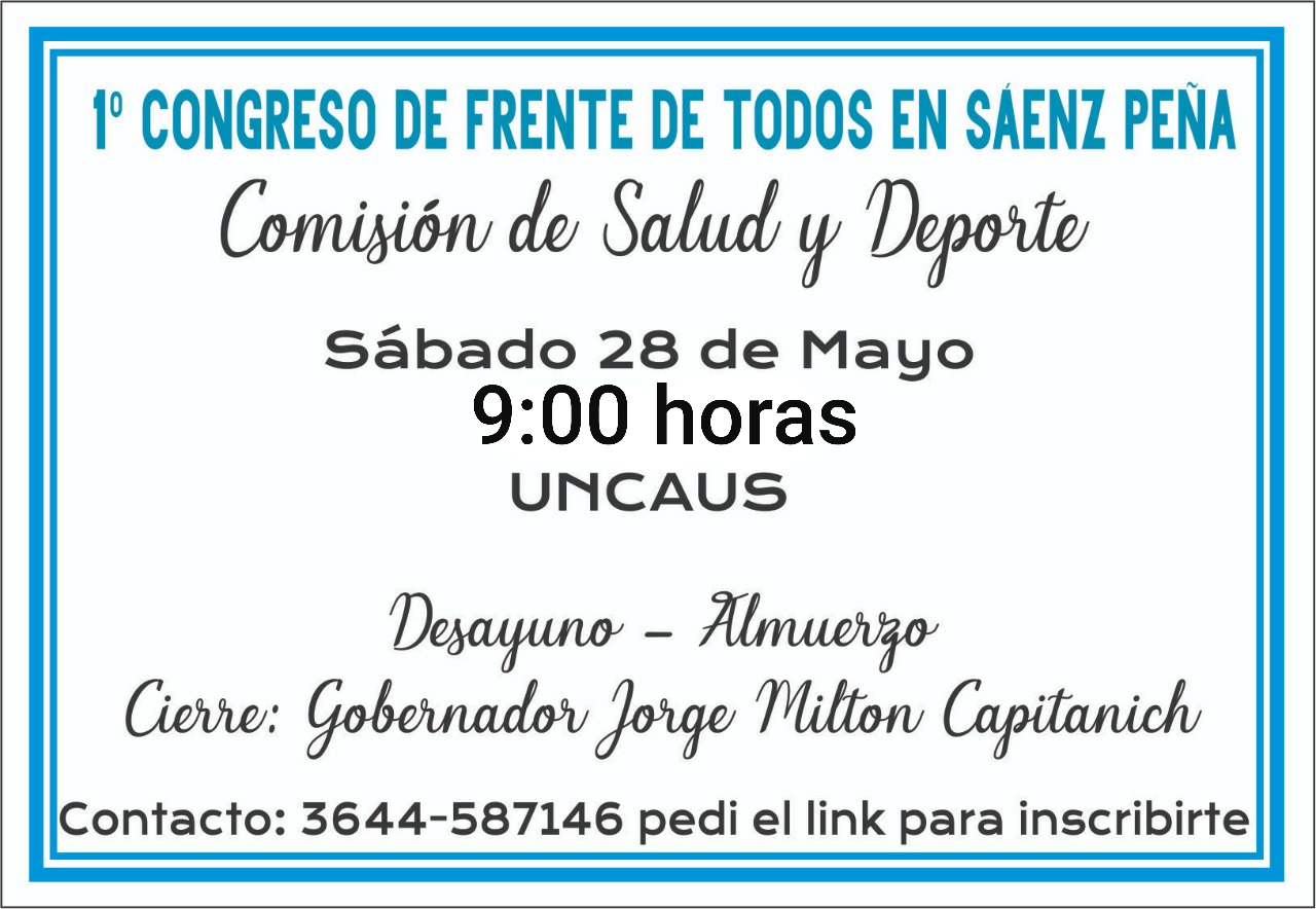 El Frente de todos tendrá su primer congreso provincial este sábado 28 de mayo en la localidad de Sáenz Peña. El encuentro, que tendrá lugar en las instalaciones de la Universidad del Chaco Austral (Uncaus), se centrará en el debate y trabajo en comisiones con la participación de todos los partidos y agrupaciones que integran el espacio político.