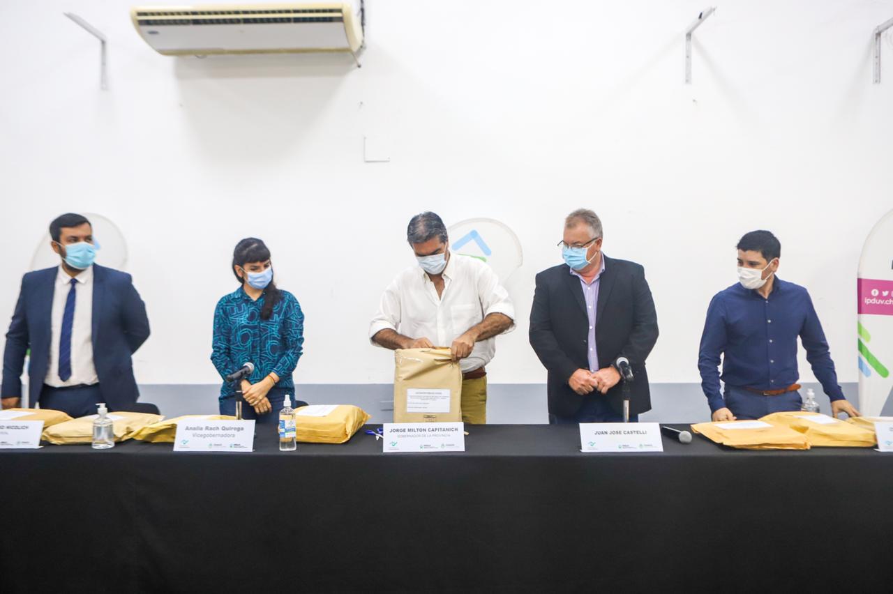 ūEn la mañana de este martes 12 de abril el intendente Pio Oscar Sander participó de la apertura de sobres para la licitación de 216 viviendas enmarcadas en el programa “Casa Propia – Construir Futuro” qué se realizan a través del instituto provincial de desarrollo urbano y vivienda (IPDUV) lo que significa nuevas soluciones habitacionales para la localidad. El intendente Sander agradeció esta nueva licitación de viviendas para la ciudad “Juan José Castelli viene creciendo mucho demográficamente y esto lo vimos y venimos trabajando hace tiempo en la planificación urbanística. La chacra 112, en el ingreso norte de la ciudad, es un lugar alto qué se está poblando y en él se van a construir las 216 viviendas a estas le sumamos 16 más que ya fueron licitadas y en total serán 232”. Además, agregó “tenemos 140 viviendas en ejecución de las 300 viviendas que se habían iniciado allá por el 2013 – 2014 de las cuales ya se entregaron 60 soluciones habitacionales”. Y finalizó “Para nosotros es muy significativo ya que hay muchas familias alquilando y otros que viven en el hacinamiento y con esta inversión que hace el gobierno provincial a 232 familias les va a permitir tener su primera casa”. Participaron de esta apertura de sobres el gobernador de la provincia Jorge Milton Capitanich, la vicegobernadora Analía Rach Quiroga, el presidente del instituto de vivienda Diego Arévalo y funcionarias del gabinete.